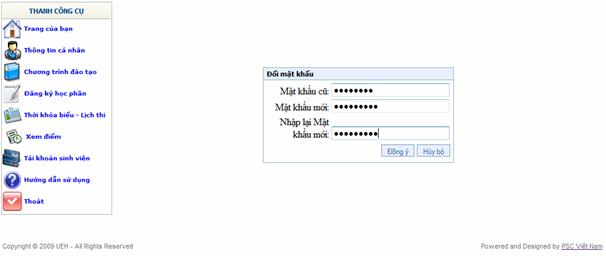 “Mật khẩu mới”, “Nhập lại mật khẩu