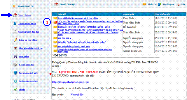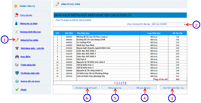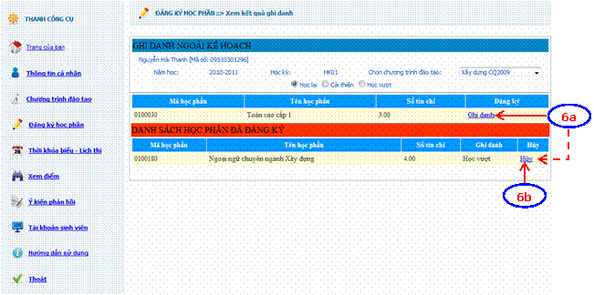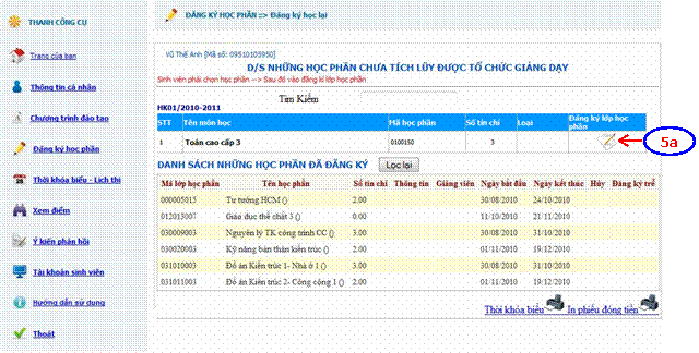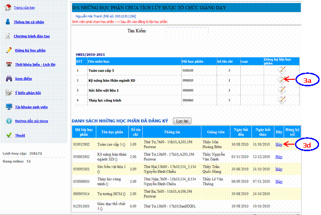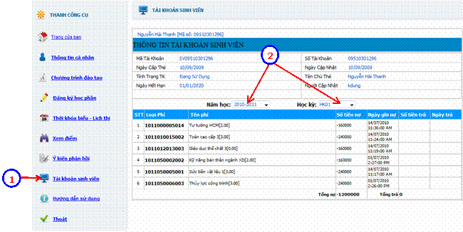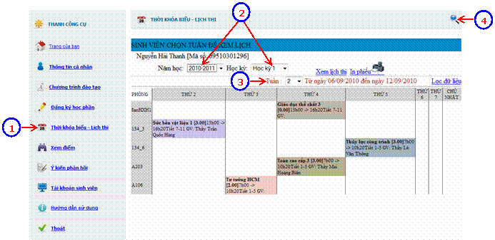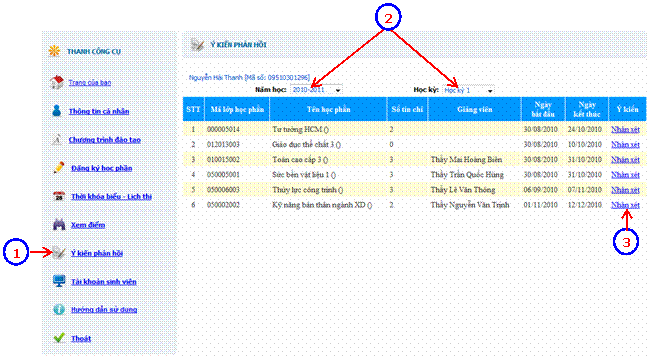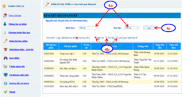 “Năm học’”, “Học kỳ”. Hệ thống hiển