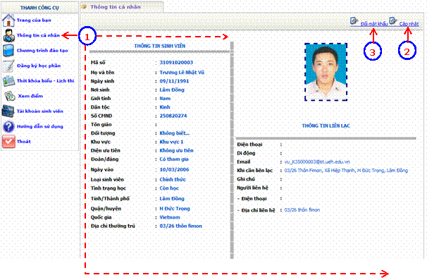 chọn vào Thông tin cá nhân để xem phần thông tin cá nhân