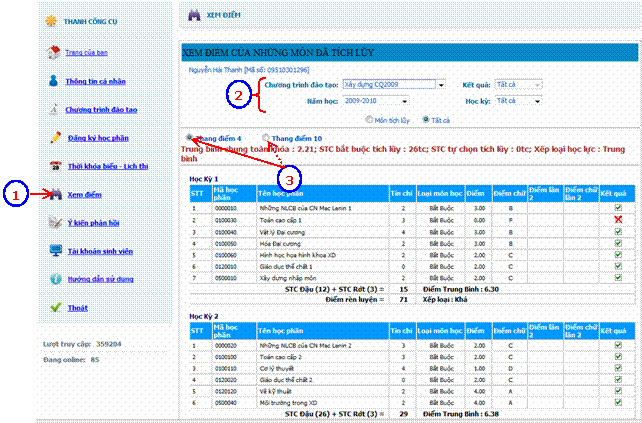 chọn xem điểm theo ‘Thang điểm 4’ hoặc theo ‘Thang điểm 10’.